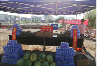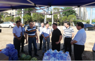 烈日下的八一大桥项目现场一片繁忙景象,工人们有的在支模、有的在焊接钢筋、有的在浇筑砼,一切都井然有序,忙而不乱。屯溪区区委书记江善良一行一到现场,就将一件件防暑降温慰问品递到在施工的工人们手中,并嘱咐在高温下施工的操作人员要多注意休息、及时补充水分和营养,按项目部要求合理安排工作时间,避免中午高温时间段施工,同时要求项目部积极做好防暑降温工作,保障施工一线工人的生命安全。充分体现了屯溪区委、区政府等领导对我集团公司的一片深情厚谊和关怀。