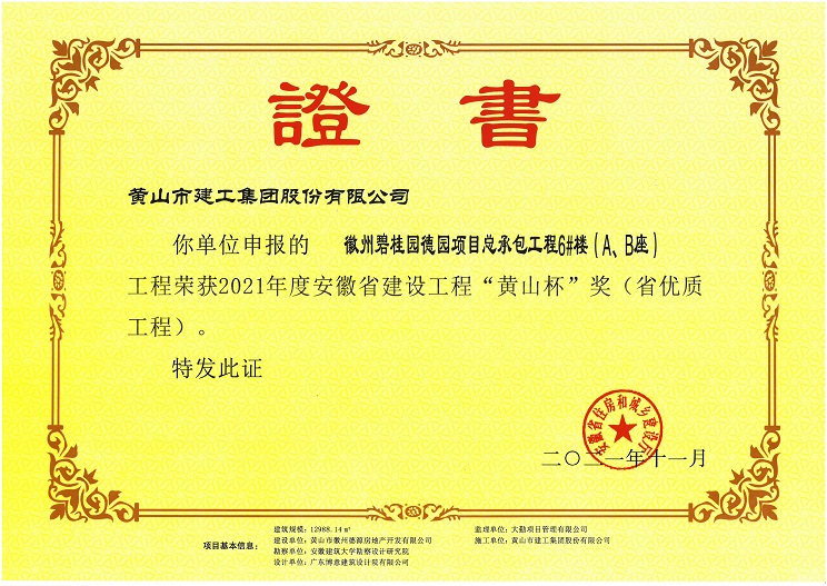 由开云网页版·官方版在线登入-开云(中国) 承建的徽州区碧桂园德园项目总承包工程6#楼(A、B座) 工程荣获安徽省工程质量最高奖“黄山杯”奖。该工程在开工伊始,项目部就制订了创优目标,严格过程控制,建立健全项目质量管理体系,狠抓现场施工管理,把好施工过程质量控制关,为创精品工程打下坚实的基础。
