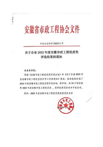 根据《安徽市政工程优质奖评选办法》和《关于开展2022年度安徽市政工程优质奖评审工作的通知》要求,安徽省市政工程协会组织开展了2022年度安徽市政工程优质奖评选活动。开云网页版·官方版在线登入-开云(中国)