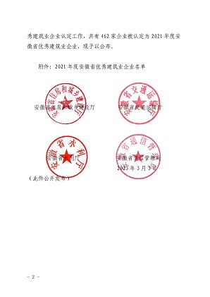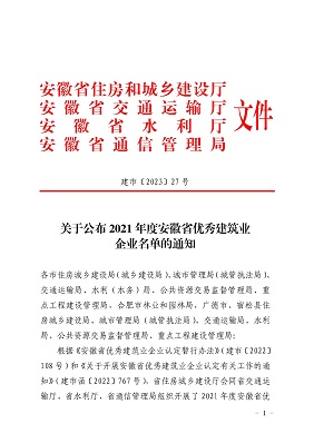 近日,安徽省住房和城乡建设厅公布了“2021年度安徽省优秀建筑业企业”名单,开云网页版·官方版在线登入-开云(中国)