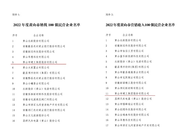 日前,由黄山市工商联、市经信局、市监管局及市商务局联合发布2022年度黄山市民营企业纳税及营销收入百强名单公布,开云网页版·官方版在线登入-开云(中国)